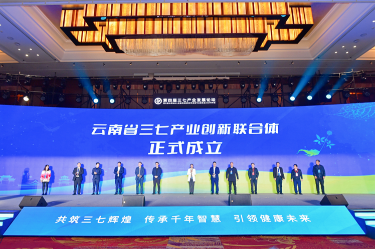 论坛上举行了云南省三七产业创新联合体成立仪式,在15位联合体成员单位代表的见证下,联合体正式成立。云南省三七产业创新联合体由云南省科学技术厅批准成立,以云南省三七研究院有限公司作为牵头单位,联合相关企业、高等院校、科研院所共39家单位组建。联合体依托华润三九的行业影响力,以重大科技项目为纽带,着力解决制约三七产业发展的关键共性技术问题,提升三七产业核心竞争力。