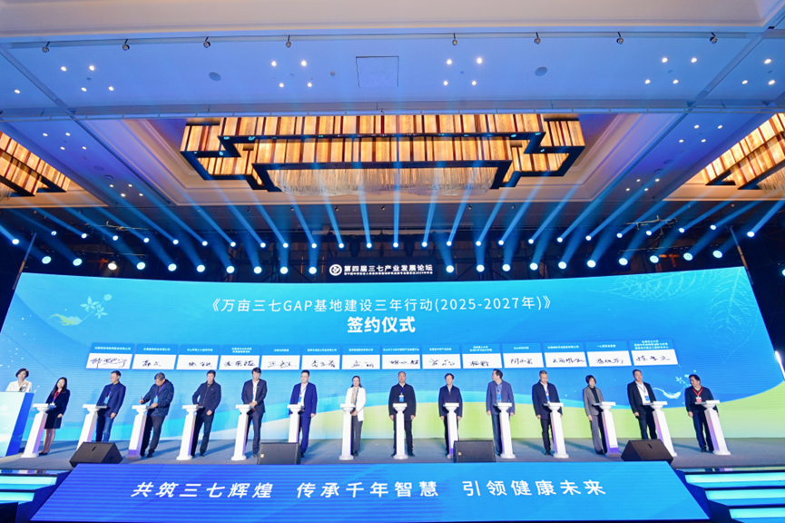 为贯彻落实中共中央、国务院《关于促进中医药传承创新发展的意见》,响应云南省把中药材产业打造成为第二个“烟草型”支柱产业的部署要求,响应《全国中药材GAP联合推进倡议》,论坛上,云南省三七产业创新联合体发布了《万亩三七GAP基地建设三年行动(2025—2027年)》。
