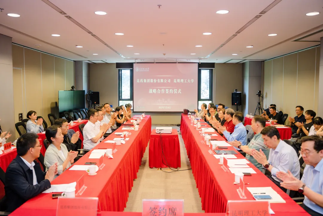 2025年7月14日,昆药集团与昆明理工大学战略合作签约仪式在昆明理工大学莲华校区伍集成会堂举行。昆药集团党委书记、副董事长、总裁颜炜,高级副总裁刘军锋以及昆明理工大学校长王华、副校长牛昱宇出席此次签约仪式,此次仪式由昆明理工大学牛昱宇副校长主持。